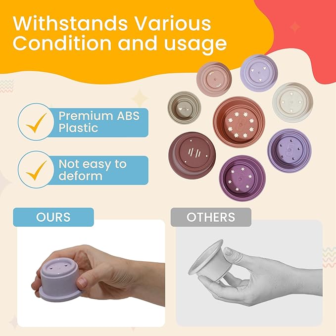 - DURABLE & SAFE - Our toddler stacking cups are manufactured with high-quality, BPA-free, non-toxic materials to ensure your child's safety. These stack cups form an excellent and secure playtime companion being the perfect stackable cups for babies, they are designed with utmost care to be both enjoyable and safe.