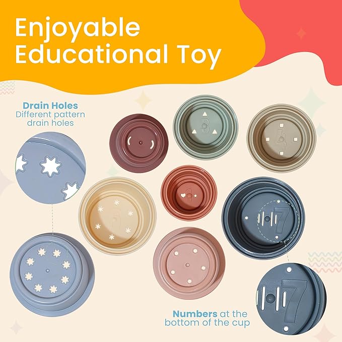 • DURABLE & SAFE - Our toddler stacking cups are manufactured with high-quality, BPA-free, non-toxic materials to ensure your child's safety. These stack cups form an excellent and secure playtime companion being the perfect stackable cups for babies, they are designed with utmost care to be both enjoyable and safe.