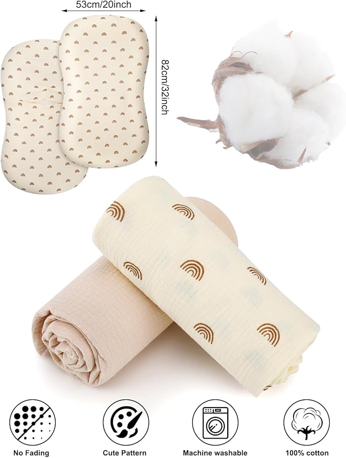 Premium Muslin Material: Crafted from 100% cotton muslin, these lounger covers offer superior breathability and softness, ensuring a cozy and comfortable surface for your baby lounger.