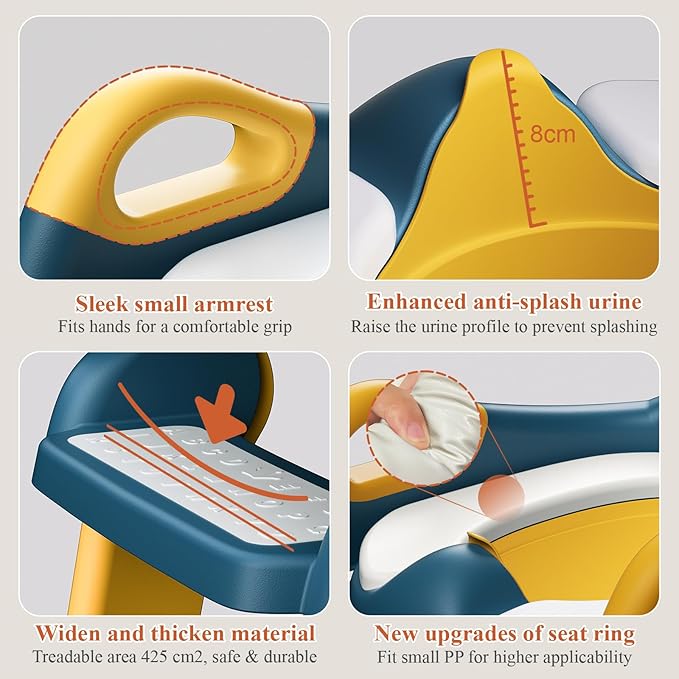 - Stable, Safe and Non-Slip: The four corners of the bottom of the toilet training seat for toddlers baby are non-slip to ensure safety and stability so that your child can use the potty step stool safely. Thickened material, more durable. Widened pedal area, convenient for toddlers to turn around and sit down, more assured to use