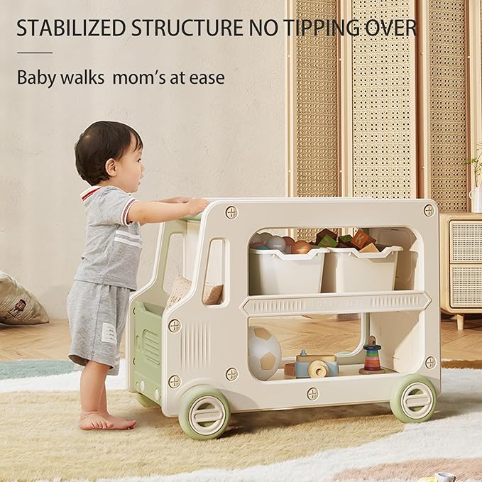 - Spacious Storage Solution: The Deer COCO toy organizer combines fun with functionality, featuring a delightful bus theme that will excite your child about tidying up. This adorable toy storage organizer features 2 large bins and an open cabinet with an open 2-layered , perfect for storing kids’ toys, dolls, snacks, books, games and more. Its lightweight construction makes it easy to move, so it can be a perfect fit in playrooms, bedrooms, or nurseries.