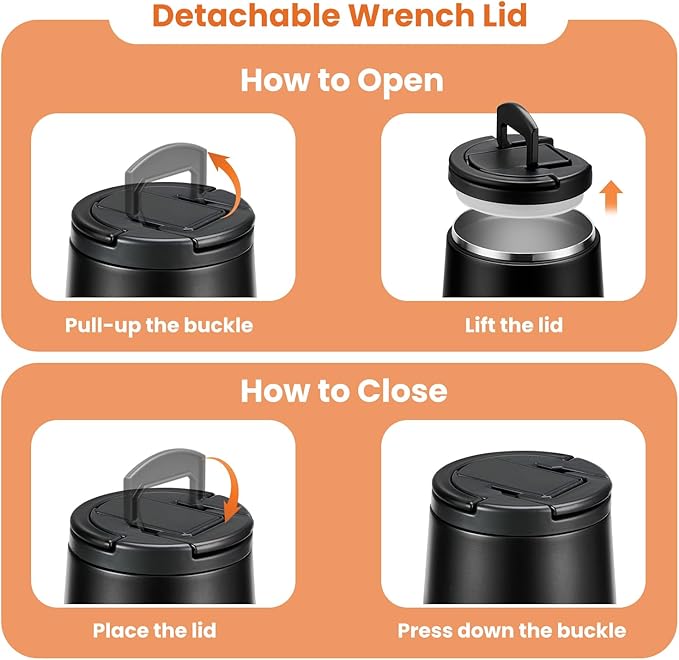 - New Buckle of Lid: The food containers feature a press-seal construction, allowing you to simply pull the handle upwards to 90° to open the lid/ 90° downward closure. This design is maintaining vacuum no need to rotate the lid open . Additionally, the container comes equipped with a carrying handle, making it convenient for your child to carry it. Whether at school, an outdoor outing, or a family gathering, this user-friendly design empowers children to confidently enjoy their delicious meals.