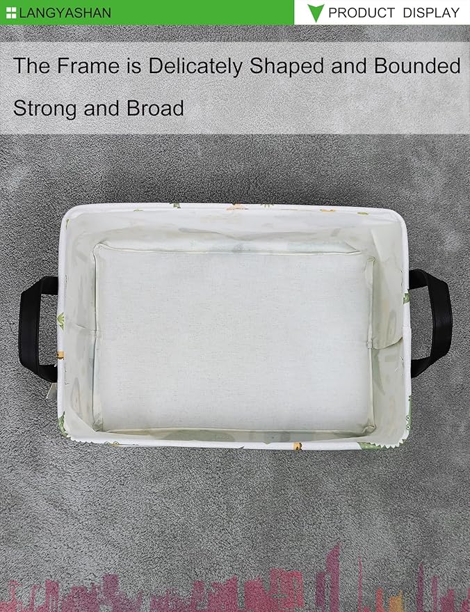 LANGYASHAN Rectangular Storage Bin Collapse Canvas Fabric Cartoon Storage Basket with Handles for Organizing Home Kitchen Boys and Girls Toys Office Closet Shelf Baskets (Rec animal)