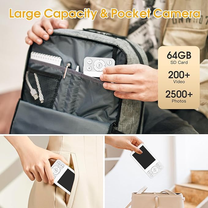 - 【Portable & Versatile Features】The portable camera is slim enough to fit in your pocket. It with rear HD selfie mirror, you can see your beautiful self from the selfie mirror, making your photos more natural and beautiful. And it supports H.264 encoding, MOV format, videos or photos uploaded to mobile phones or computers can be played directly, share beautiful moments anytime, anywhere.