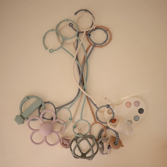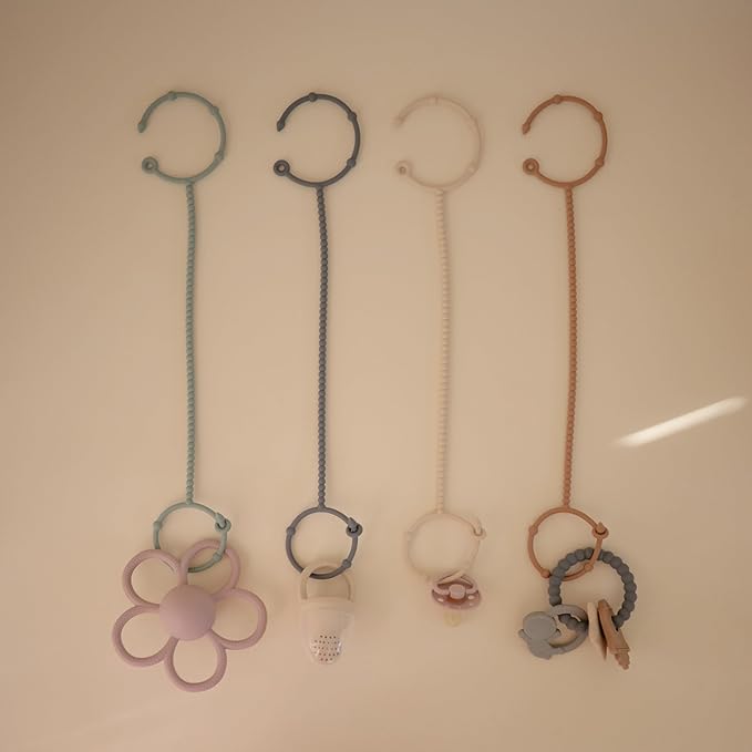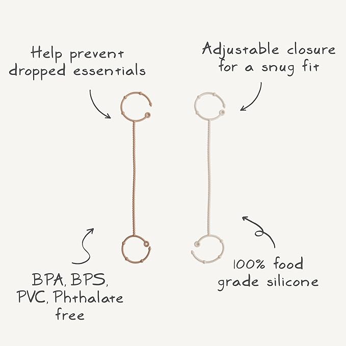 Ready for Families On The Go: Mushie's adjustable silicone straps keep baby essentials secure so parents and littles on-the-go can enjoy more peaceful outings. Help prevent dropped toys, pacifiers, and sippy cups with these versatile holders designed to attach to strollers, high chairs, car seats, and more.