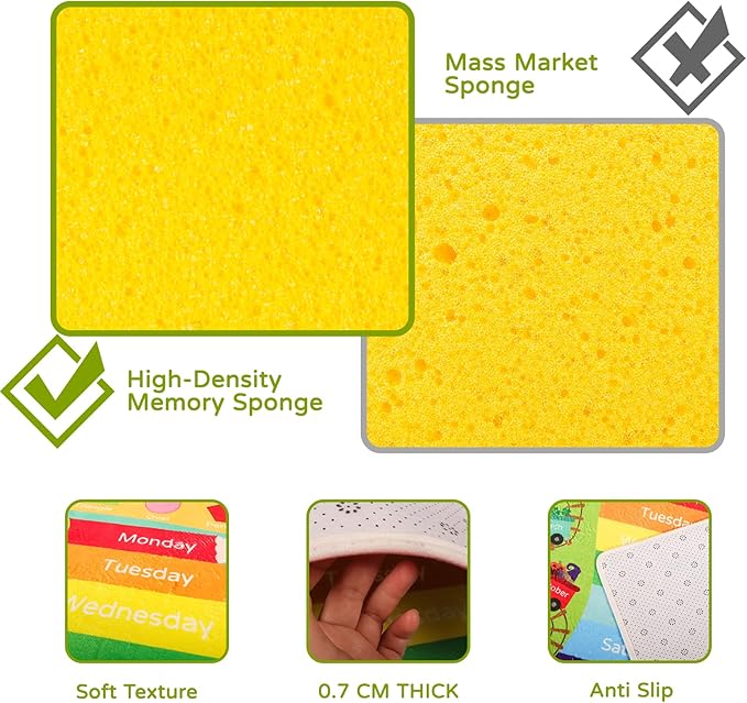 - Great for Kids: The play rug with bright, cheerful colors and adorable designs that appeal to both boys and girls, our play mat is designed to capture the attention of young children. Its playful patterns and fun visuals spark imagination and creativity, transforming any room into a vibrant learning environment that children will love.