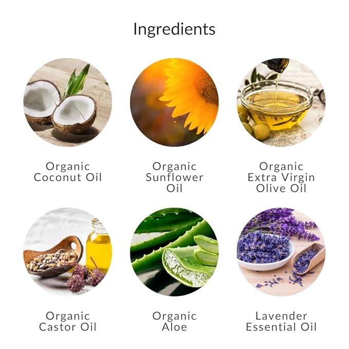RICH IN ORGANIC OILS - Contains organic sunflower, coconut, extra virgin olive, and castor oils, packed with antioxidants, vitamins, and essential fatty acids for lasting nourishment.