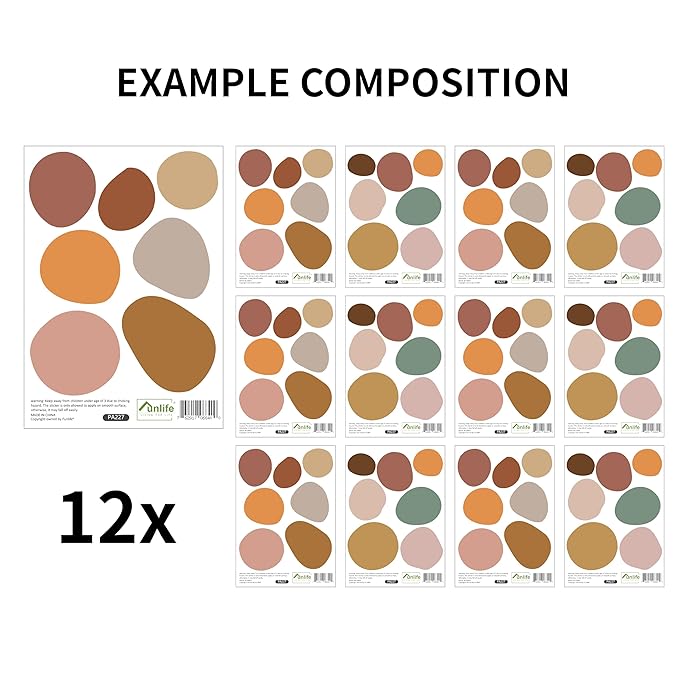Boho Polka Dot Wall Decals 84 PCS, Boho Wall Sticker for Girls Room Living and Playroom Nursery, Removable Wall Decals Kids Room Decor Vinyl Murals DIY Cute Decorations (12 Sheets)