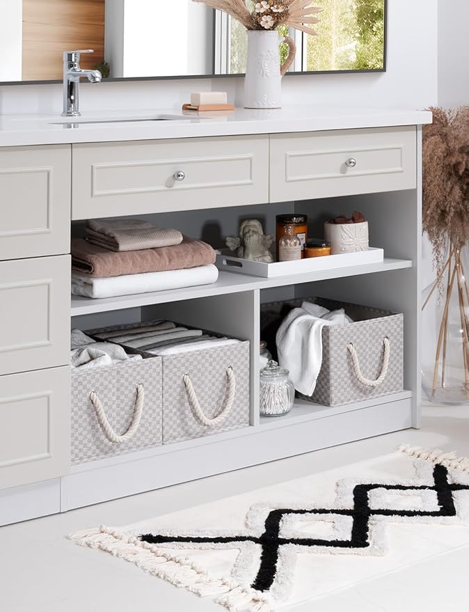• Breathable and Sturdy Material: Crafted from high-quality material, these foldable storage bins are built to withstand everyday use, providing long-lasting durability while also offering a stylish touch.