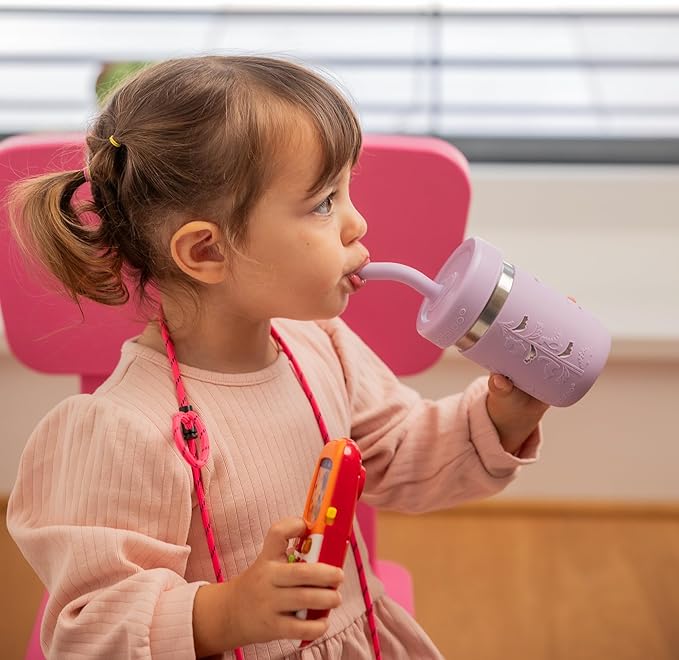 - Lightweight, Ergonomic, and Kid-Friendly: The Pandaloo cup is lightweight and perfectly shaped for little hands to grip comfortably. The soft, textured silicone sleeve provides a secure non-slip hold, while the curved straw makes sipping easy and fun. Designed to be travel-friendly, it fits easily in cup holders and lunch bags, making it the ideal drinking companion for school, daycare, or outdoor activities.