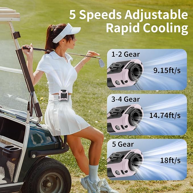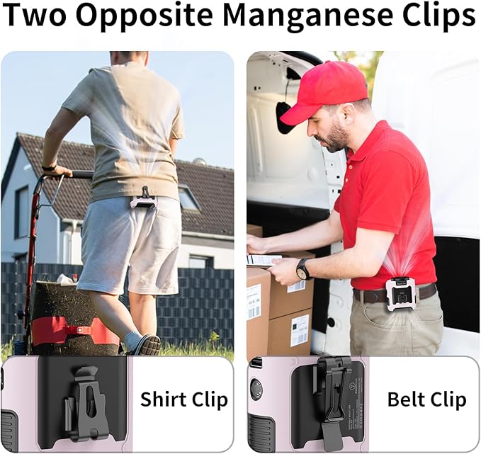 - 【With Silicone Cover, Non-Slip and Anti-Drop】Our mini portable waist fan is designed for various outdoor usage scenarios, catering to occupations like workers and farmers. It comes with a high-quality protective silicone leather case which protects from shock when dropped and ensures the body fan is not damaged at all. The upgraded Manganese steel clamp provides stronger gripping force, always keeping the wearable fan firmly, and is more durable. Practical design with two clips facing opposite directions allows for more placement options