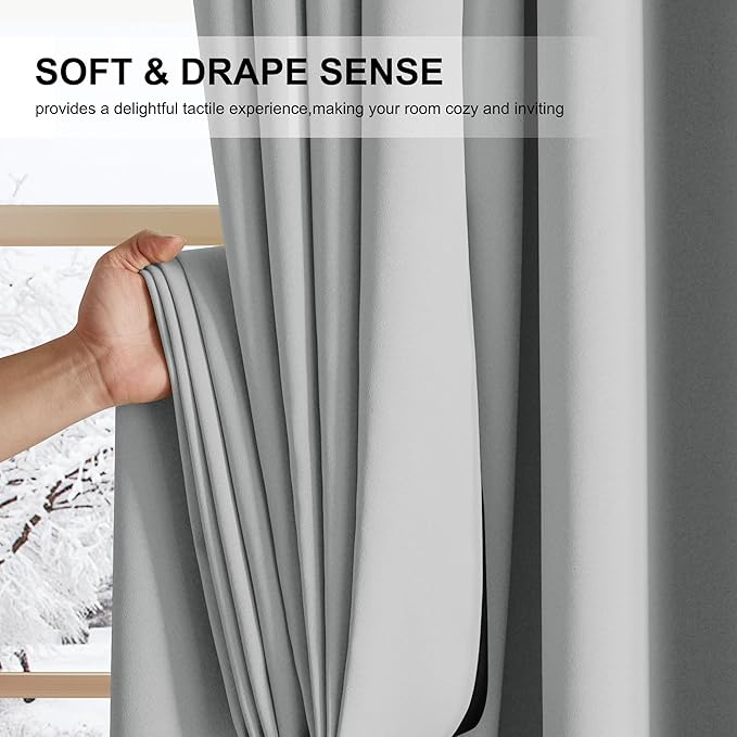 - THERMAL INSULATED & ENERGR SAVING: The blackout window curtain panels provide reasonable insulation from some heat and noise, and the insulation also helps keep the room cool in the summer and warm in the winter. Provide you with a more comfortable life experience.