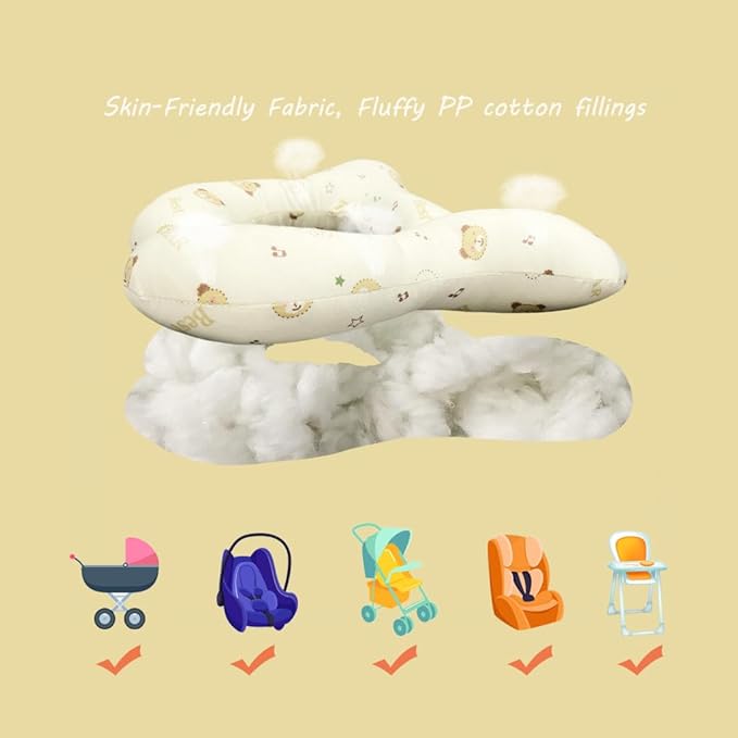 👶Material: Our baby travel pillow for car seat is made of cotton fabric, the filling is PP cotton, soft and comfortable