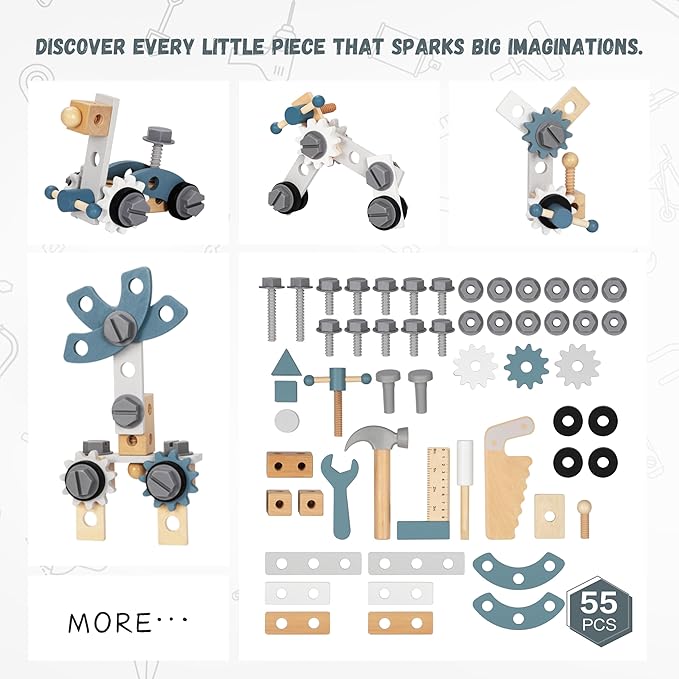 2-in-1 Interactive Tool Bench Fun: Boost creativity and motor skills with this wooden walker, featuring realistic tools like hammers, wrenches, and gears. Perfect for toddlers imaginative role-play learning