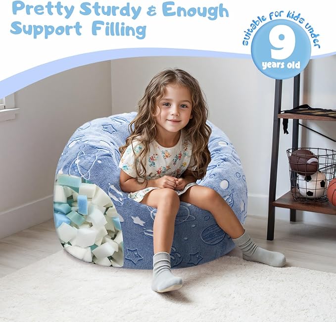 - Kids Bean Bag Chair: This toddler bean bag chair a glowing pattern. Expose the fluffy bean bag chair to sunlight or light during the day, the small bean bag with a soft glow adds a touch of wonder to any kids' room at night
