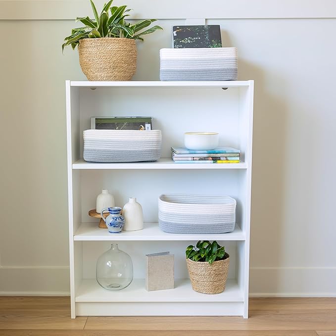 NaturalCozy 13.5”x8.5”x5.5” Rectangle Storage Baskets for Shelves 3 Pack | Cotton Rope Woven Small Baskets for Organizing | Small Storage Bins for Nursery, Bathroom, Closet, Shelf, Decorative