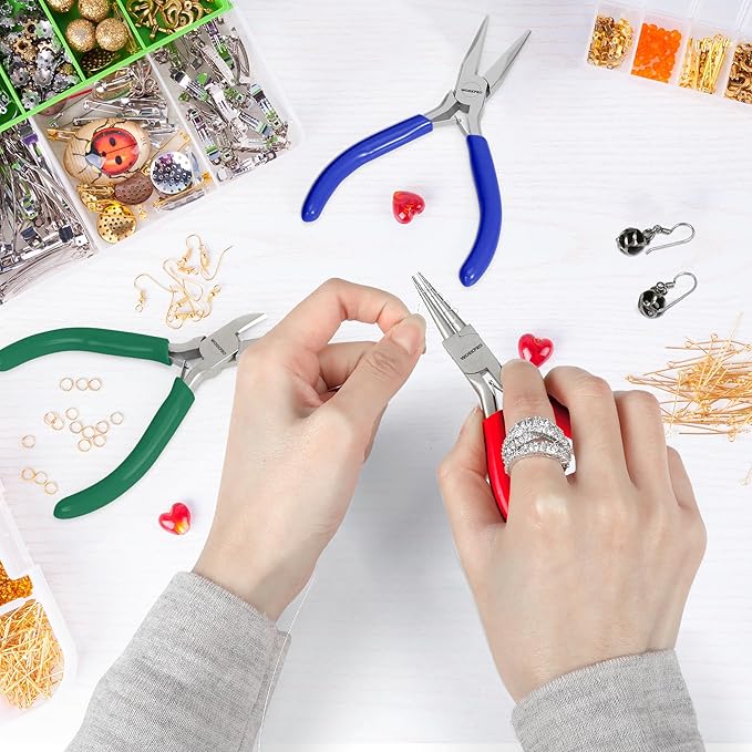 - COMPLETE JEWELRY MAKING KIT: This set of 3 small jewelry pliers is an ideal tool for charm necklaces, beading, jewelry repair, wire wrapping, and rosary making. It's suitable for both beginners and professionals and makes a great gift for DIY enthusiasts and craft lovers. With these high-quality WORKPRO jewelry making tools, you'll be able to create beautiful jewelry pieces with ease