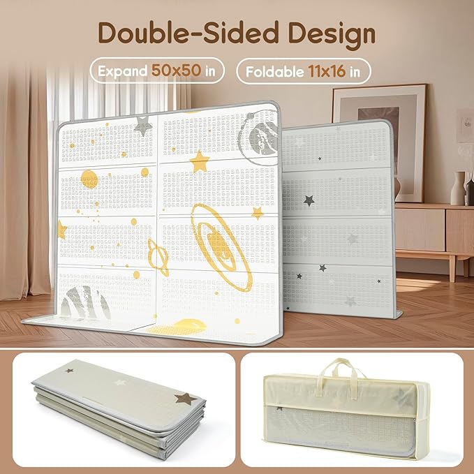- MULTIPLE USES: Our foldable play mat measures 50 x 50 inches and provides plenty of room for your baby to crawl, walk, stand, and play freely, the safety of the baby's first step in life.