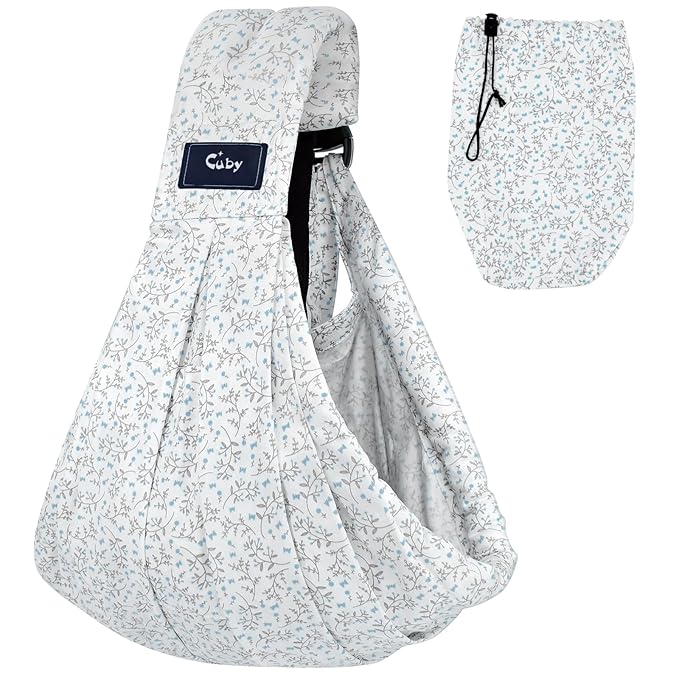 CUBY Wrap Baby Sling Carrier, Baby Wraps Sling Carrier Adjustable Breathable Lightweight Easy to Wearing - Baby Slings for Newborn Infant Toddler Front & Hip Carry Up to 40lbs (Blue Flower)