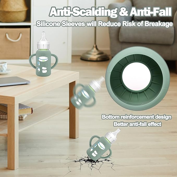 - Unique Designed for Baby Bottles - The silicone sleeves for Dr. Brown's Baby Bottles can against drop down,bumps and scratches. These are a must essential product for using glass baby bottles. They provide a more sturdy protection for glass baby bottle from breaking if dropped, which also unique handle design shape make it easier to grip and hold