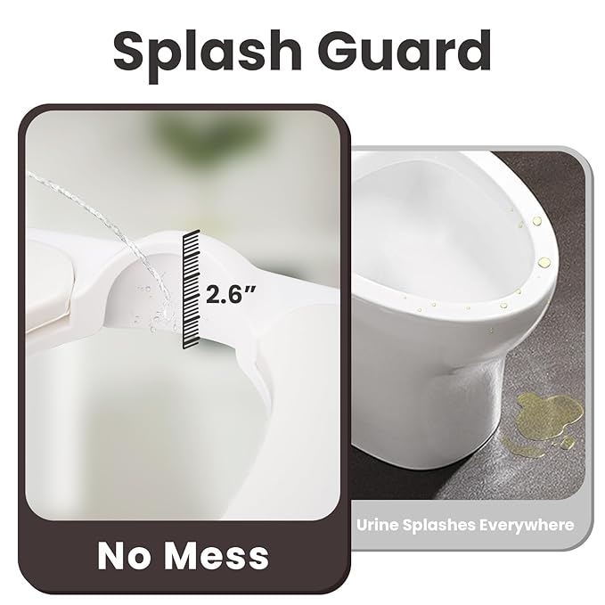 Comfortable and Easy-Clean Potty Seat: Flat base fits securely on flat toilet rims. Includes splash guard, raised back edge, and adjustable height. Seat removes easily for a quick clean or full rinse