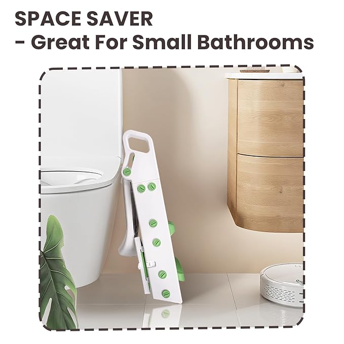Foldable and Space-Saving: The upgraded potty seat is foldable, allowing it to be stored between the sink and toilet or in any corner of the bathroom, saving space and making it ideal for small bathrooms