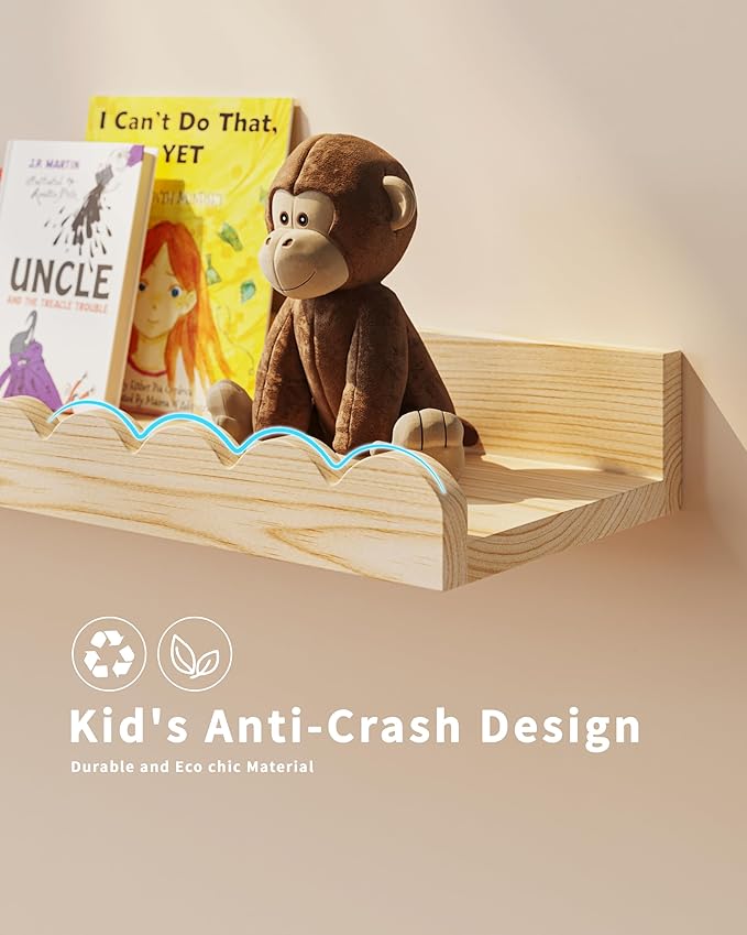 - High-Quality Wood: Crafted from premium hardwood, our wall-mounted bookshelf ensures durability and a long-lasting finish, making it a reliable addition to any child's room