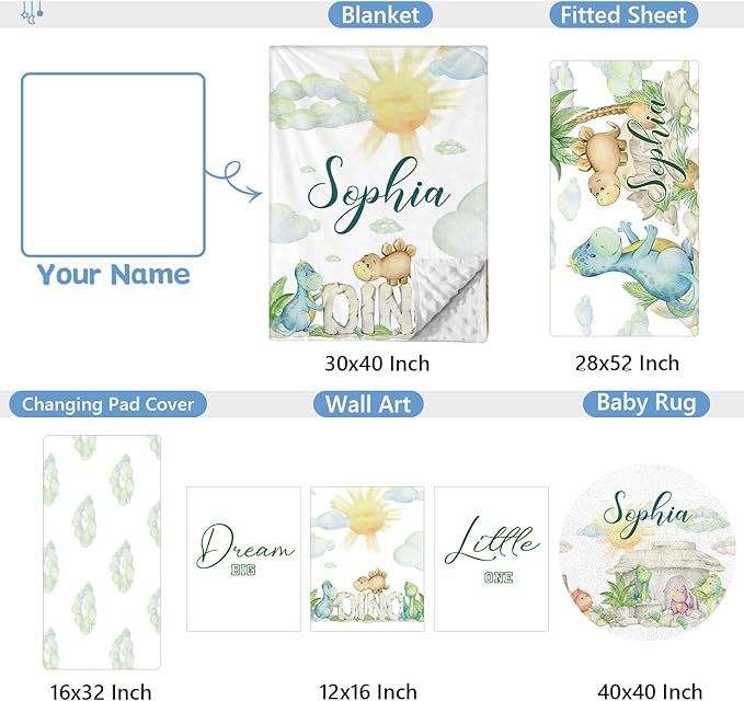 - Matching Set: This baby crib set includes a crib blanket, fitted crib sheet, changing pad cover, baby rug and three wall arts, all designed to add style to your nursery. Each piece is crafted with attention to detail, ensuring durability and long-lasting use.