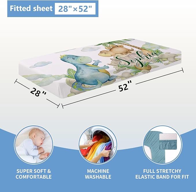 Personalized Baby Crib Bedding Set, 5 Pcs Custom Set With Name, Soft Double Layer Nursery Bedding, Flannel Dinosaur Set for Boys, Toddlers Newborns Customized Gift