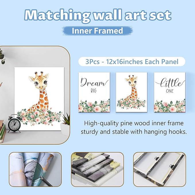 - Matching Set: This baby crib set includes a crib blanket, fitted crib sheet, changing pad cover, baby rug and three wall arts, all designed to add style to your nursery. Each piece is crafted with attention to detail, ensuring durability and long-lasting use.