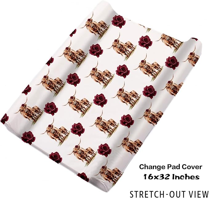 Personalized Nursery Crib Bedding Set: Custom Name 5 Piece Baby Crib Sets with Rose Highland Cow Pattern - Toddler Double Layer Blanket Set, Comfortable Crib Bed Sheets for Baby Grils