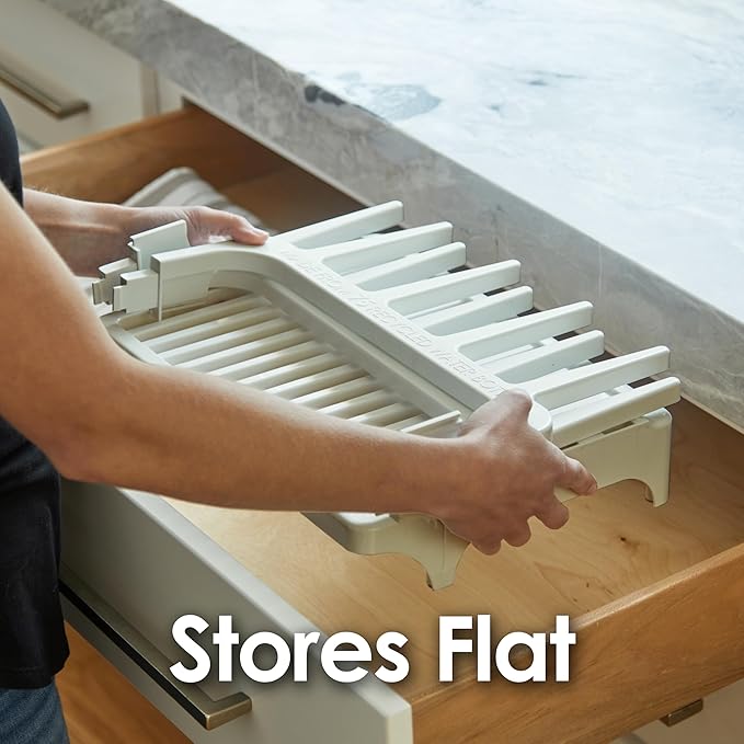 - ✅ BEAUTIFUL SPACE SAVING DESIGN! Great for air drying everyday items like plastic bags, cups, baby bottles, tumblers and most items which are not dishwasher safe. The compact drying rack sits near the back of your counter, leaving the front counter area available for use.