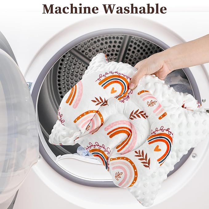 Pea Pod Infant Car Seat Insert with 3 Strap Covers, 3 in 1 Reversible Rainbow Baby Car Seat Head Support for Newborn, 3D Soft Minky Carseat Cushion for Preemie to Infant, Stroller, Swing, Bouncer