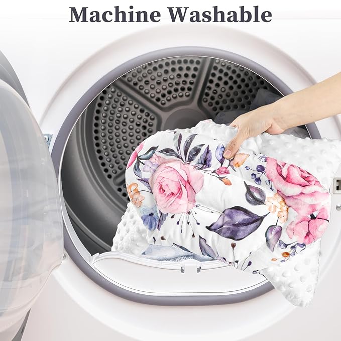 Pea Pod Infant Car Seat Insert with 3 Strap Covers, 3 in 1 Reversible Floral Baby Car Seat Head Support for Newborn, 3D Soft Minky Carseat Cushion for Preemie to Infant, Stroller, Swing, Bouncer