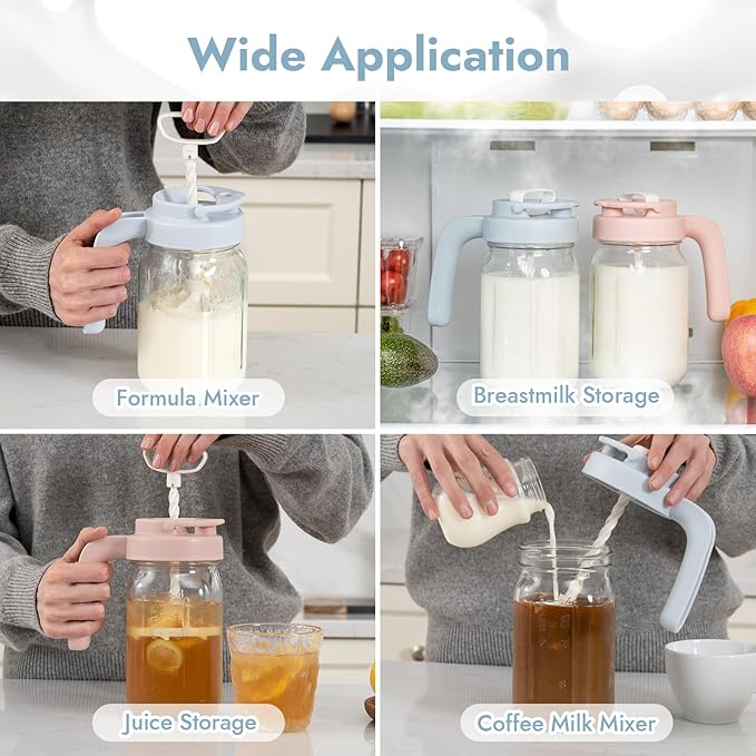 Papablic 32oz Formula Mixing Pitcher Lid, Breastmilk Pitcher Mixing Handle & Flip Locking Spout for Mixing Formula/Breastmilk/Protein Powder/Coffee, Blue