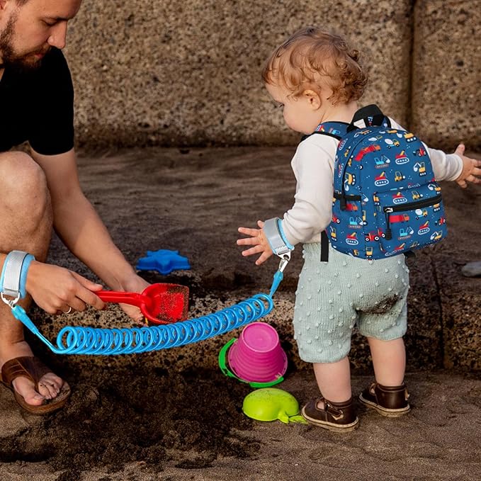 Accmor Toddler Backpack with Leash, Cute Baby Backpack with Anti Lost Wrist Link, Mini Kids Backpack Leash Walking Harness for Travel, Adjustable Excavator Backpack Tether for Boys Girls Ages 1-3