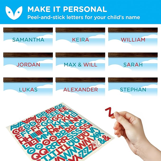 MAKE IT PERSONAL - Your child will love seeing their name on their favorite safari animals wall growth chart! Use our peel-and-stick decal letters to personalize your height tracker for kids.