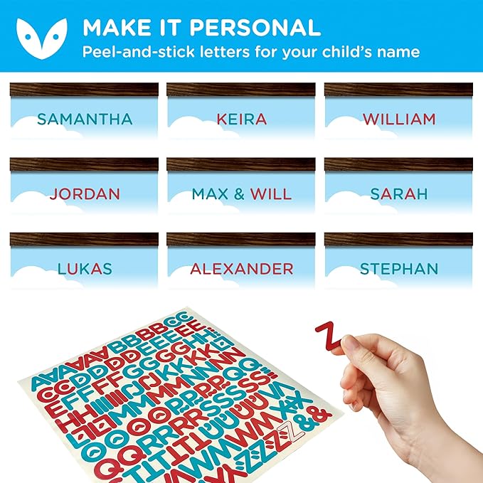 MAKE IT PERSONAL - Your child will love seeing their name on their favorite vehicles wall growth chart! Use our peel-and-stick decal letters to personalize your height tracker for kids.