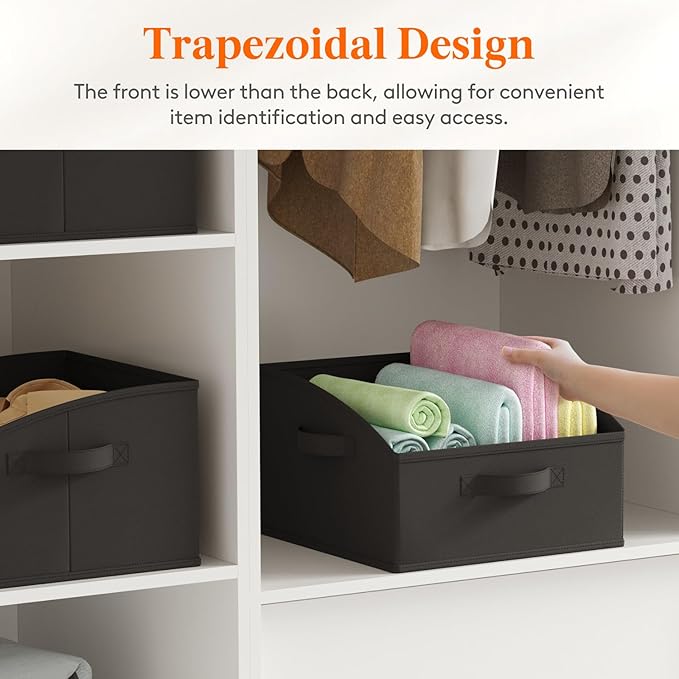Lifewit Storage Baskets for Shelves, 6 Packs Non-woven Fabric Trapezoid Closet Organizer Bins with Handles, Foldable Clothing Containers Box for Clothes, Toy, Towel, Book, DVD, Hats, Small-Black
