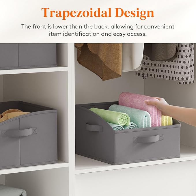 Lifewit Storage Baskets for Shelves, 6 Packs Non-woven Fabric Trapezoid Closet Organizer Bins with Handles, Foldable Clothing Containers Box for Clothes, Toy, Towel, Book, DVD, Hats, Small-Grey