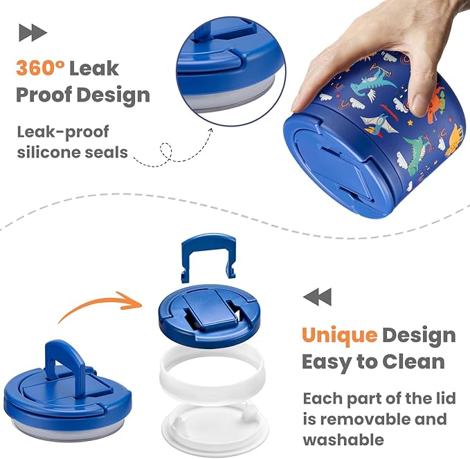 - 100% Leak Proof Design: our food thermos comes with a thick silicone gasket. You can put it into your lunch bag without worrying about spillage. The insulated thermal food jar comes with a stainless steel spoon, convenient for your child to use during lunch.