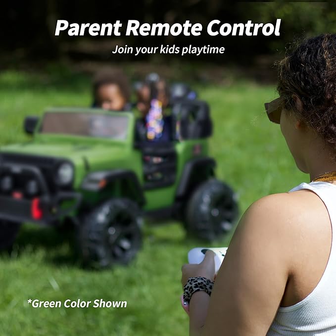 - QUICK-INSTALL STEERING WHEEL: With a one-click steering wheel setup, this 24V kids electric car with remote enables parents to assemble it quickly. The design reduces wire entanglement risks, ensuring kids enjoy their rides without worry.