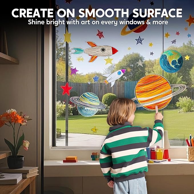 - Bright & Vibrant Colors: Features 12 rich, eye-catching colors that remain vibrant and bold, suitable for all kinds of artistic projects, including drawings, paintings, and creative crayon art on paper and glass, sidewalks, and more.