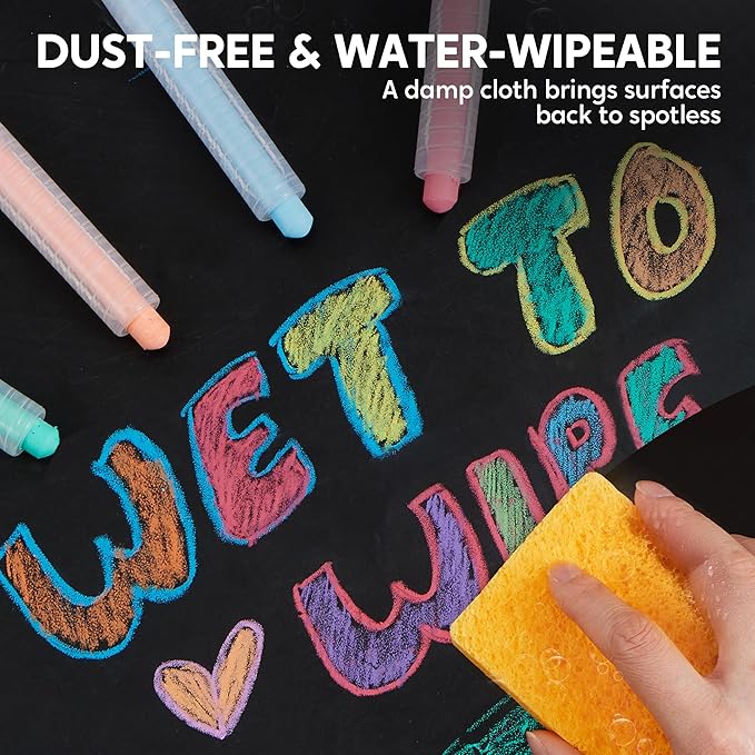 - Super Value Pack: Includes 12 pieces of pen-like dustless crayon in 12 vibrant colors. Great for creating art, drawing, and painting on various surfaces such as paper, whiteboards, glasses, metals, tiles, and plastic. Motivate creativity in every stroke!