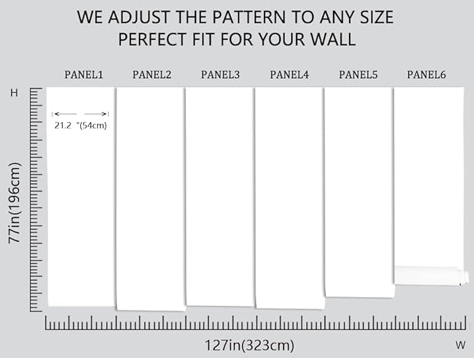 Before purchasing, you need to measure the size you need, our mural is 77 inches high and 127 inches wide, in order to facilitate long-distance transportation, we divide the width of the mural into six pieces of 21.2 inches each, with a numerical serial number underneath each piece for easy installation!