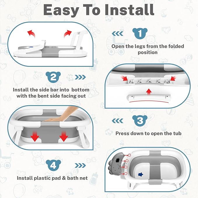 Ideal for 0-18 Months: Collapsible Bathtub grows with your child, providing a safe bathing solution as they develop from infant to toddler