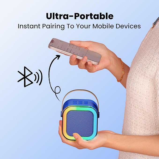 - Cute & Compact: User-friendly design ensures operation with ease, child-safe & durable materials are perfect for girls and boys aged 3-12 years old kids. Easy to carry, this portable karaoke machine doubles as a Bluetooth speaker for family dance parties, bedtime stories, or mom's workout sessions - entertainment for every occasion