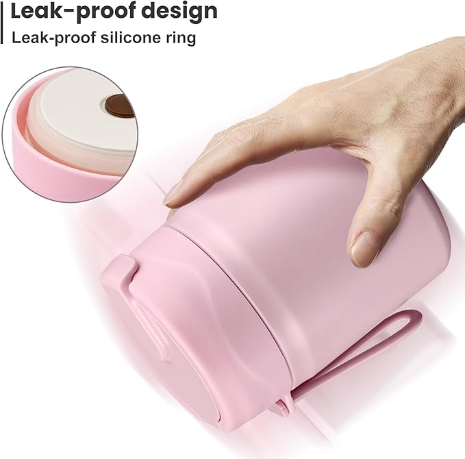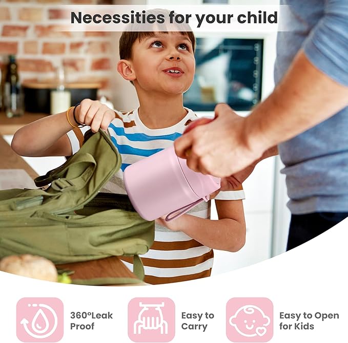 - Leak-Proof Design: Featuring an upgraded double-layer silicone seal that provides a 360Β° leak-proof guarantee. Rest assured that our leak-proof thermo food jar can fit in your lunch bag without worrying about spills. The insulated thermal food jar comes with a stainless steel spoon for your child's convenience.