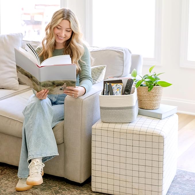 - Safe, Natural Cotton Organizer Bins: Crafted from the highest quality material in the market, our storage bins are oh-so-sturdy (and cute) and ready to take on little humans. They’re 100% safe, so you can rest easy if teething toddlers take a nibble.