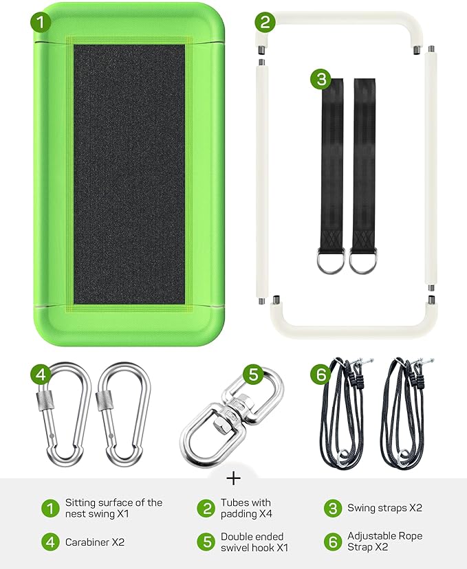 - Complete Swing Kit: Includes 2 heavy-duty tree straps, durable hardware, and clear instructions for easy installation. Quickly mount the swing on trees, swing sets, or sturdy beams. No extra purchases required to set up this tree swing.